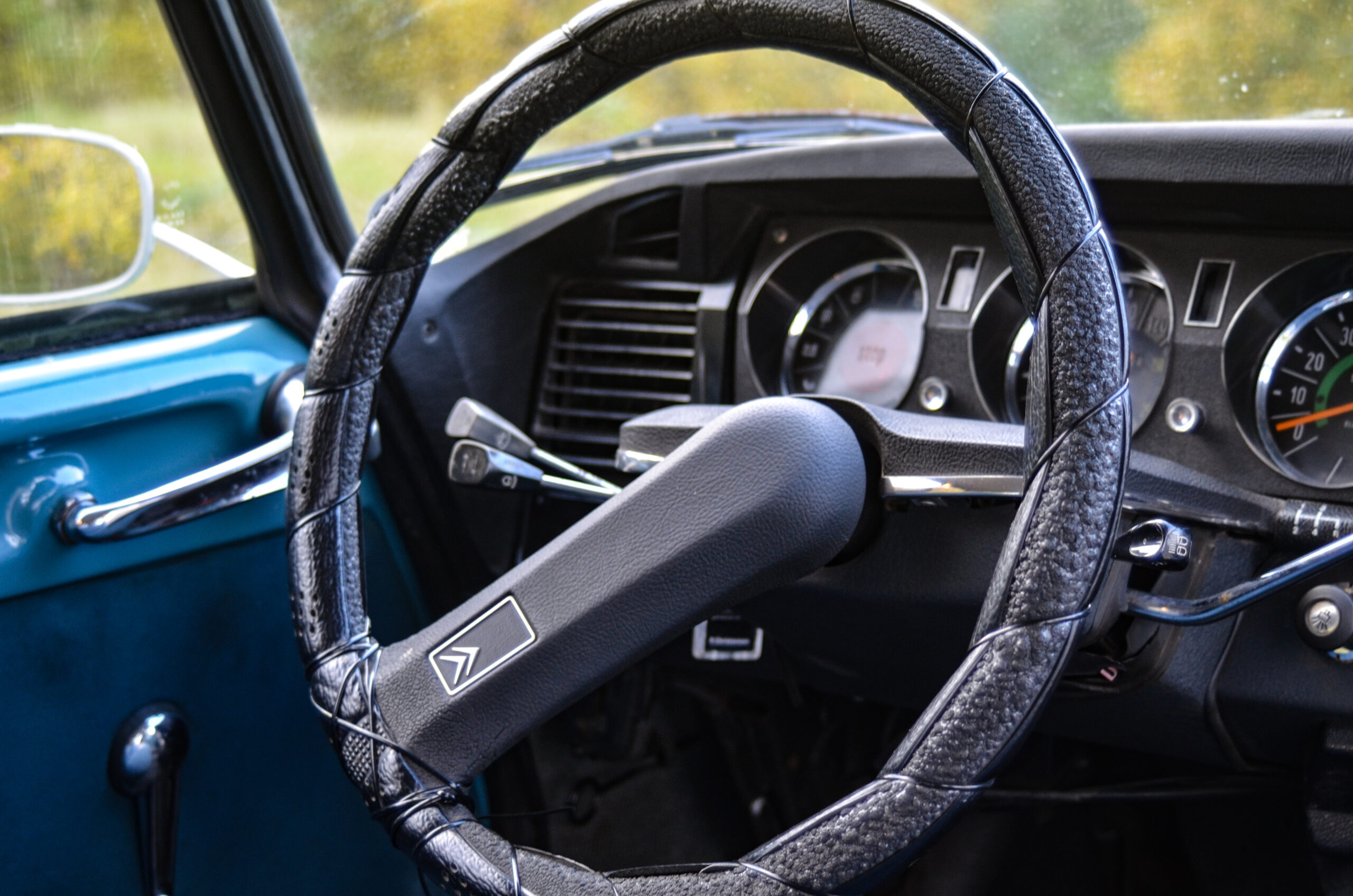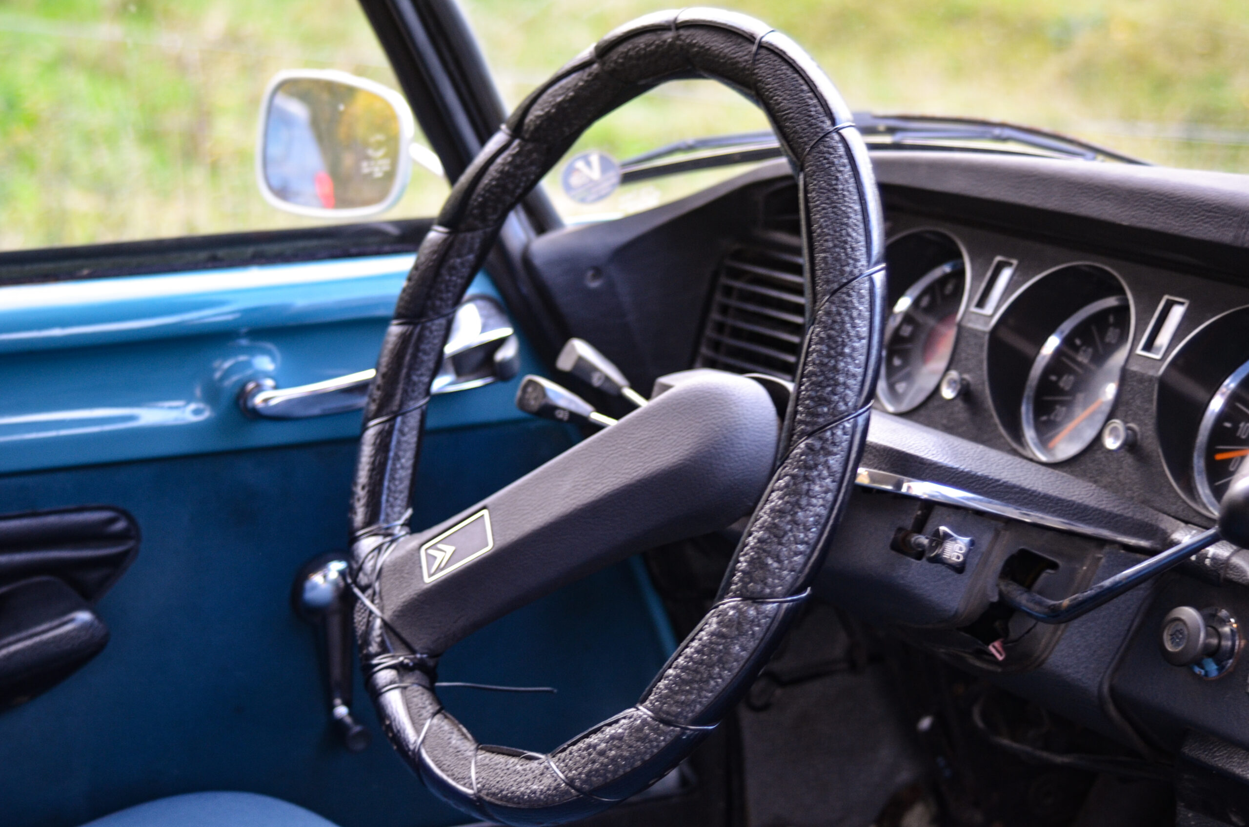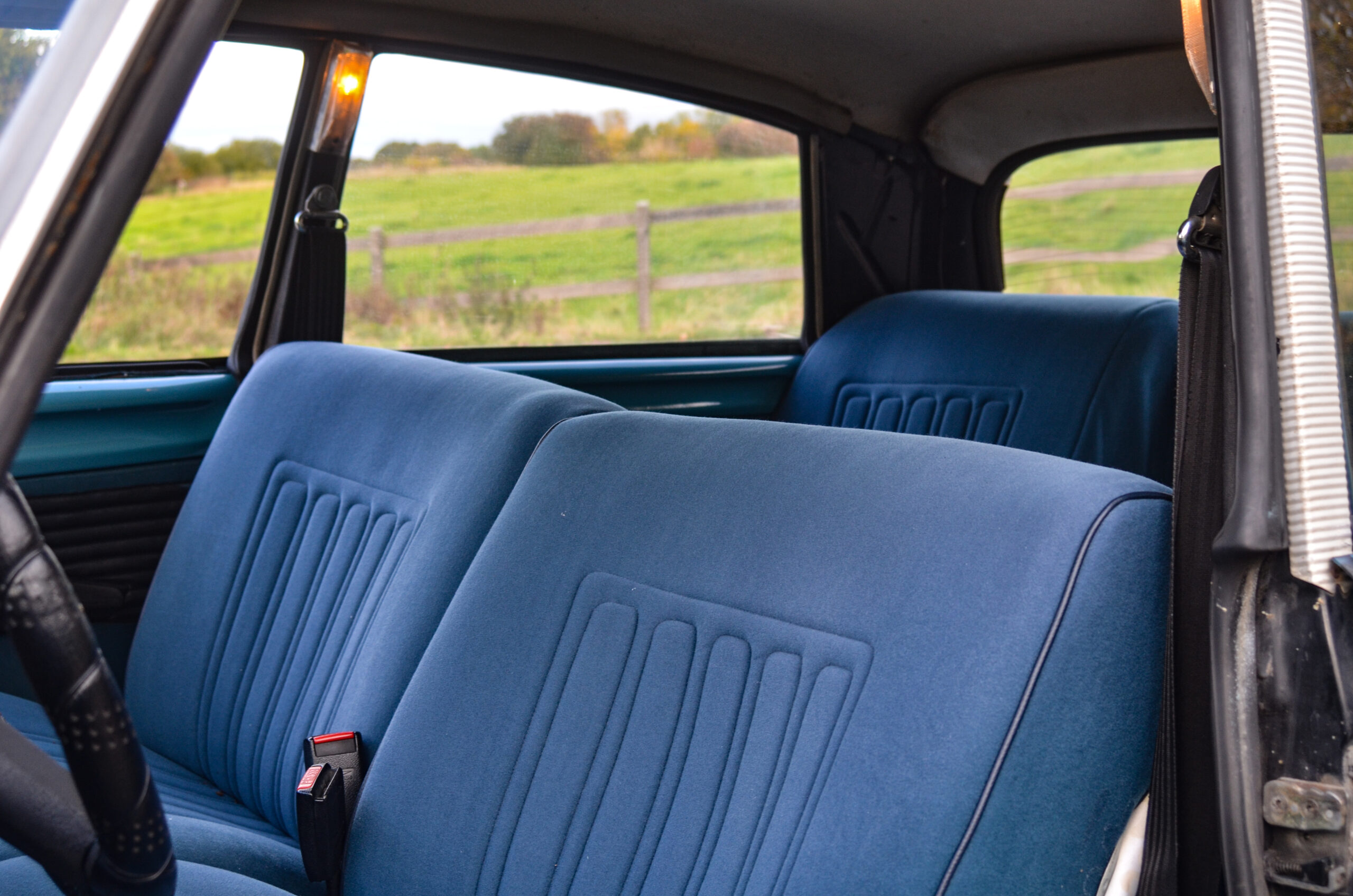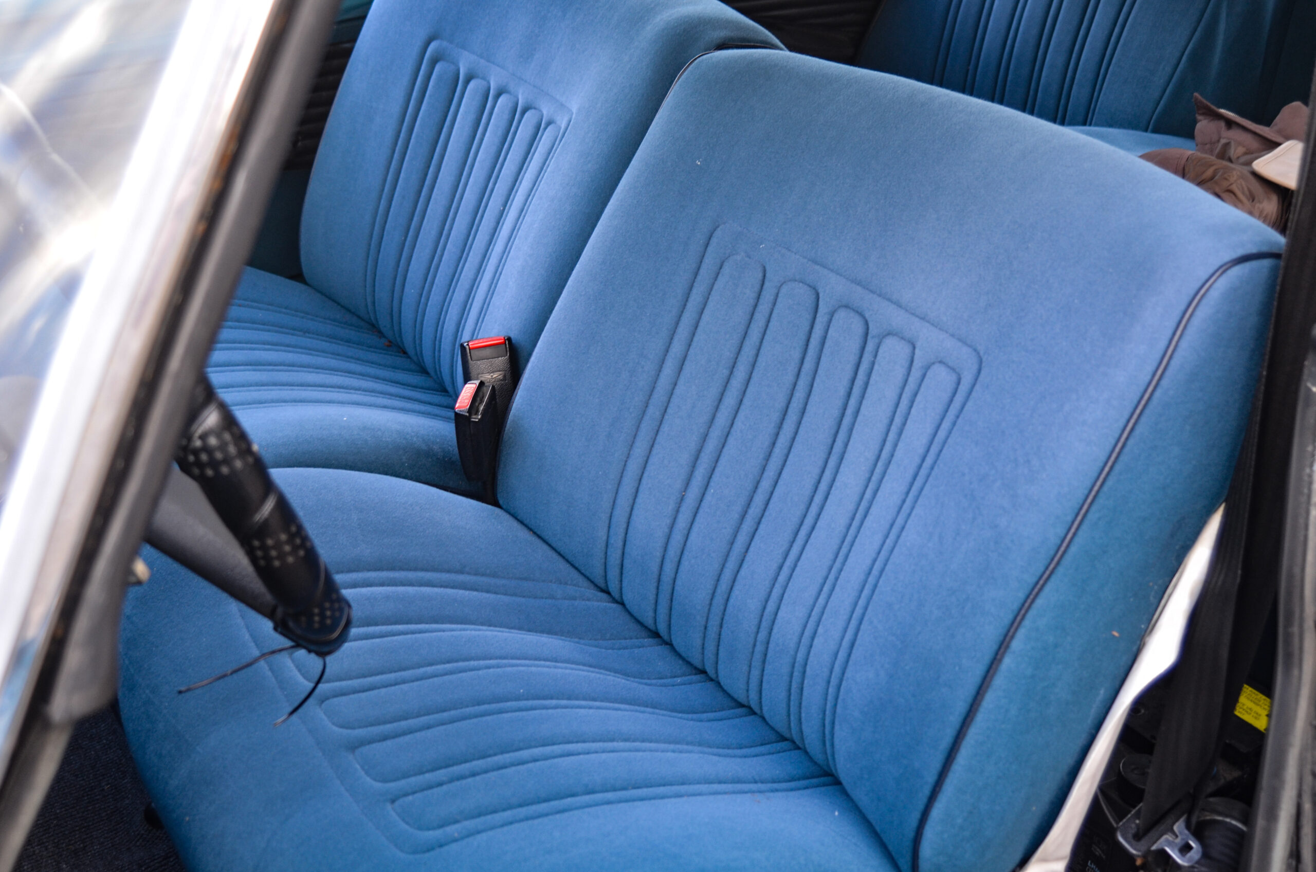 Dog er der tale om en bil, der er blevet brugt – og elsket. Man vil finde lidt patina her og der, samt marginalt rust. Interiøret er nyligt istandsat med nyt betræk i den rigtige farve sæder, som løfter kabinen.
