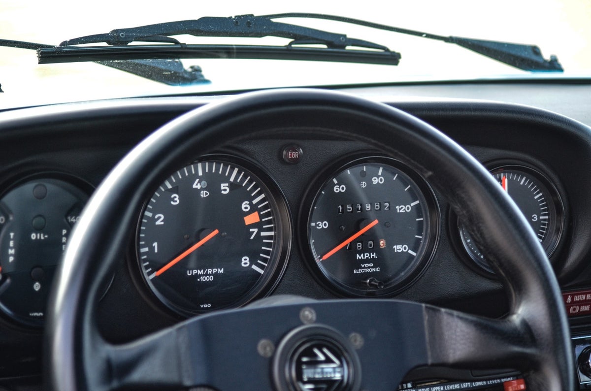 📷 Der er tale om en bil, der er blevet brugt – og elsket. De værste kosmetiske skrammer er netop udbedret med ny lak, men du vil stadig finde lidt patina her og der, som hører sig til en bil af denne årgang. Interiøret er nyligt istandsat med læderbetrukne sæder, et sportsligt Momo-rat og detaljer, der gør kabinen både komfortabel og stilfuld. Bilen er udstyret med el-ruder og el-soltag, som begge fungerer. Derudover har bilen naturligvis den berømte “whale-tail” hækvinge og har fået blinklysglasset udskiftet til euro-spec med gult lys (rødt lygteglas haves) En bil med sjæl – og potentiale
